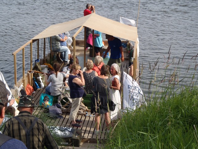 to słowa wodniackiej szanty. Słowa te są pewnie bardzo bliskie dzielnym Flisakom, którzy przybyli na przepięknej tratwie pod wodzą retmana Mieczysława Łabędzkiego w niedzielę do Kozielca. Pierwsze informacje mówiły o godz.15. Kolejne meldunki naszego kolegi Zbyszka, który od Fordonu płynął z Flisakami mówiły o opóźnieniu – najpierw do 16.00, później do 17.00 ostatecznie do brzegu przybili ok. 17. 30
