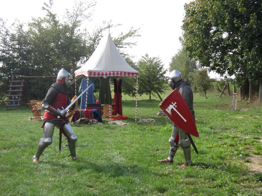 Kolejny punkt projektu "Przyszłość w naszych rękach" finansowanego w ramach Programu Fundusz Ininicjatyw Obywatelskich za nami. Tym bardziej cieszy nas rosnący udział mieszkańców naszej gminy w warsztatach, podczas, któych całe rodziny (ponad 50 osób), mogły zapoznać się z dawnymi zwyczajami rycerskiej rodziny ich strojami oraz obserwować z bezpiecznej odległości prawdziwy pojedynek rycerski. Już wkrótce. 8.10.2015 odbędą się warsztaty Zumby d