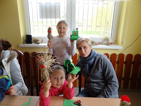 Dnia 12 kwietnia 2014r. w Świetlicy Środowiskowej w Kozielcu odbyły się kolejne zajęcia warsztatowe w ramach realizowanego przez Gminny Ośrodek Pomocy Społecznej w Dobrczu w partnerstwie ze Stowarzyszeniem na Rzecz Rozwoju Wsi Kozielec i Okolic projektu socjalnego pt. „RODZIC PEŁNĄ PARĄ”. W zajęciach uczestniczyły dzieci wraz z rodzicami z terenu wsi Kozielec i okolic. Współprowadzącą zajęcia była Pani Honorata Zielińska-Szuster – instruktor ds. kulturalnych Gminnego Ośrodka Kultury w Dobrczu. Warsztaty polegały na wspólnym wykonywaniu prac plastycznych w nawiązaniu do zbliżających się Świąt Wielkanocnych. Dodatkową atrakcją był teatrzyk na stoliczku pt. „Żabi król”. Poczęstunek zapewniła Piekarnia MIZAR z Dobrcza oraz mamy, będące uczestniczkami projektu. Wszystko to miało na celu wzmocnienie więzi między rodzicami i dziećmi, ważnego elementu w procesie wychowania naszych pociech.